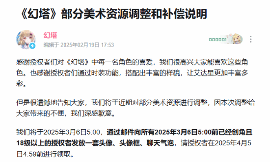 为了补偿18级以上玩家因调整带来的不便,官方提供了多种福利,包括头像、头像框和聊天气泡。此外,对于拥有涉及调整时装/拟态高定的玩家,还可以选择任一调整后的授权者时装/调整后的拟态高定/全新授权者时装作为额外补偿。